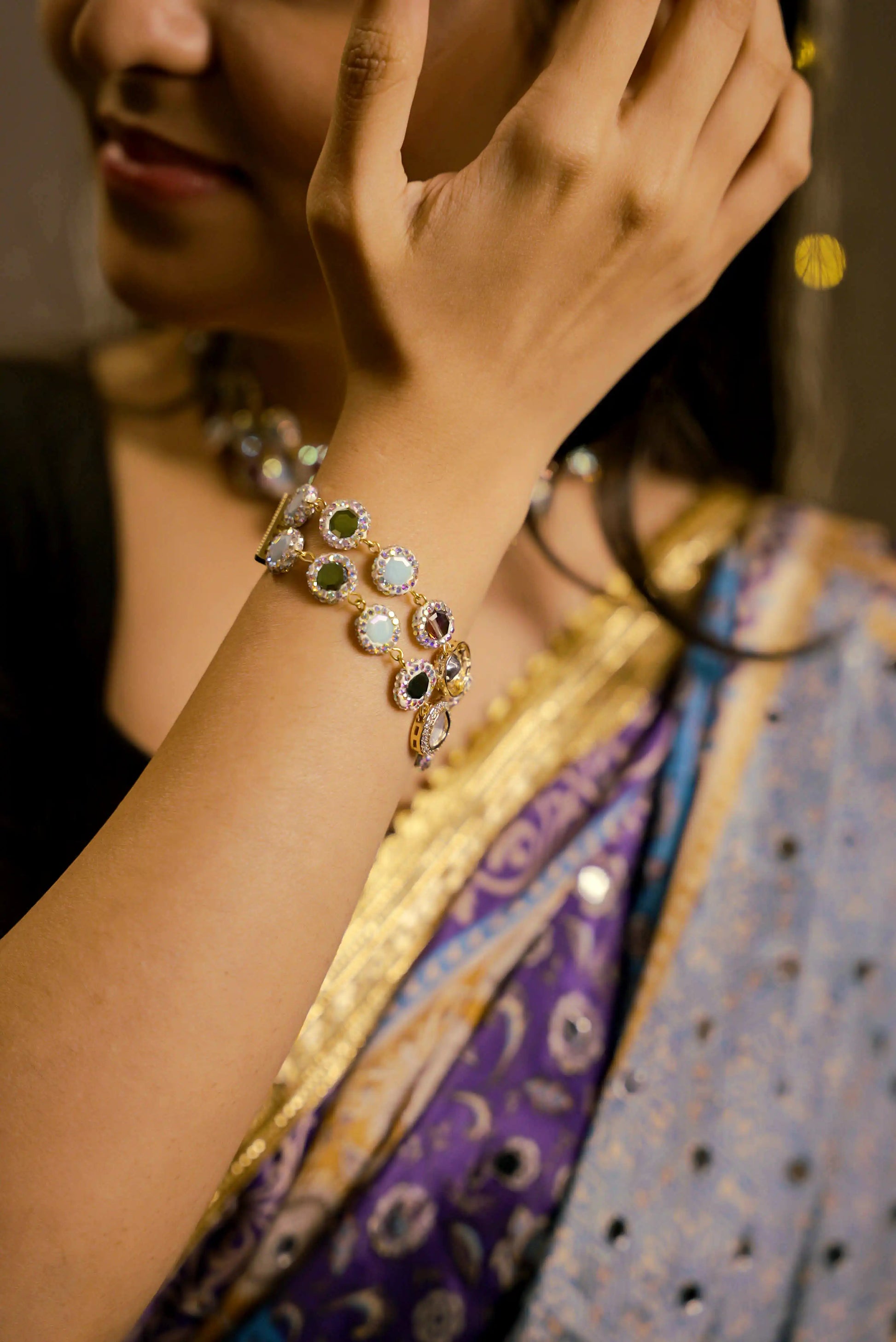 This elegant Bracelet is crafted with crystals with marcasite handwork. The design is completed with offering a beautiful blend of natural textures and refined craftsmanship. A timeless piece perfect for adding sophistication to any look.