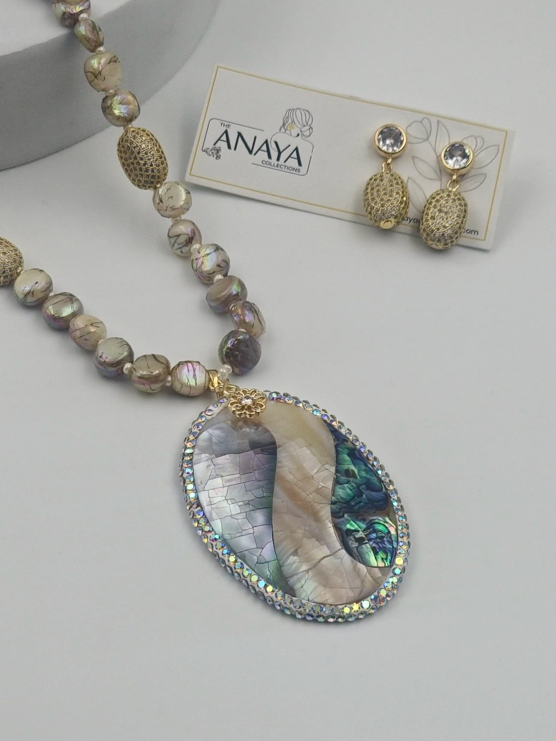 • Shell Pearl Elegance Luxury Necklace Set with MOP Pendant and matching Earrings